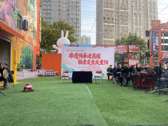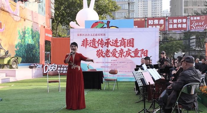 岁岁重阳,今又重阳。在这个承载着尊老敬老传统的佳节里,为推动非遗文化活态传承、深化法治宣传普及、激发商圈文旅活力,10月27日下午,由秦都区司法局、渭阳西路街道党工委、渭阳西路街道办事处主办,秦都厘文化休闲街区、西电社区、安居社区承办,咸阳市职工秦剧团等单位联合演出的“非遗传承进商圈,敬老爱亲庆重阳——秦都区法治文艺惠民展演”在秦都厘文化休闲街区温情启幕,为辖区群众送上一场集文化盛宴、法治宣传、便民服务于一体的重阳厚礼。