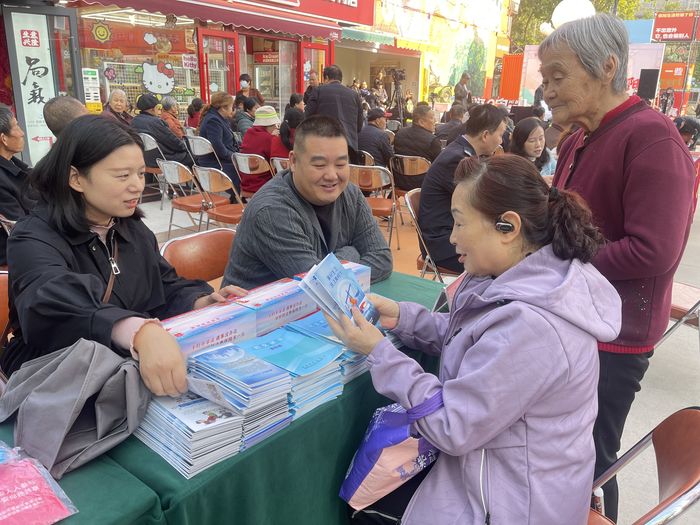 活动现场除了精彩的秦腔主场演出,还设置了功能丰富的宣传区、便民服务区,全方位满足群众需求。宣传区内,秦都区司法局、渭阳西路司法所开设专属摊位,提供一对一免费法律咨询、发放法律手册及宣传品等,重点普及防范养老诈骗、扫黑除恶、信访稳定、反邪教等相关知识。渭阳西路法律服务所主任现场坐阵,为群众解疑释惑;咸阳农商银行则聚焦《反洗钱法》及电信诈骗防范知识,普及金融安全常识;渭阳西路办事处同步开展2025年医保政策宣传,让惠民政策深入人心。便民服务区内,咸阳彩虹医院的医护人员提供专业义诊服务,咸阳慈善分会开展免费义剪和中医按摩,现场还设置了暖心茶桶,为参与群众提供热水服务。