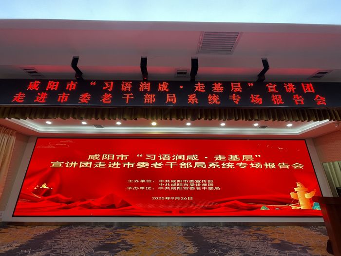 9月26日,咸阳市“习语润咸·走基层”宣讲团专场报告会在咸阳市委会议室举行,市委老干部局领导班子成员,部分离退休干部代表,离退休干部党支部书记,市级老年社团组织负责人及成员;局属单位负责人,局系统全体人员等100余人聆听宣讲。