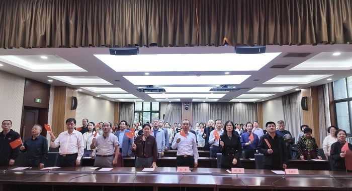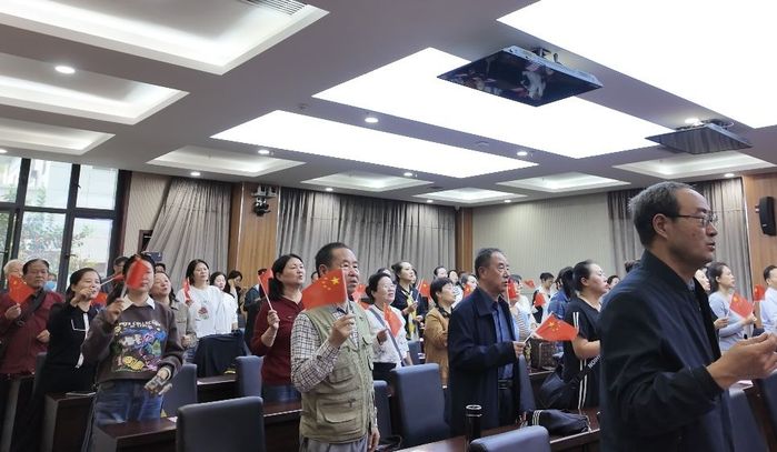 当宣讲的余音仍在心间回荡,激昂的旋律已然响起。全体与会人员肃然起立,同声高唱《没有共产党就没有新中国》。这穿越时空的经典歌声,汇聚成磅礴的力量,既是对历史的深情回望,更是面向未来的坚定承诺。