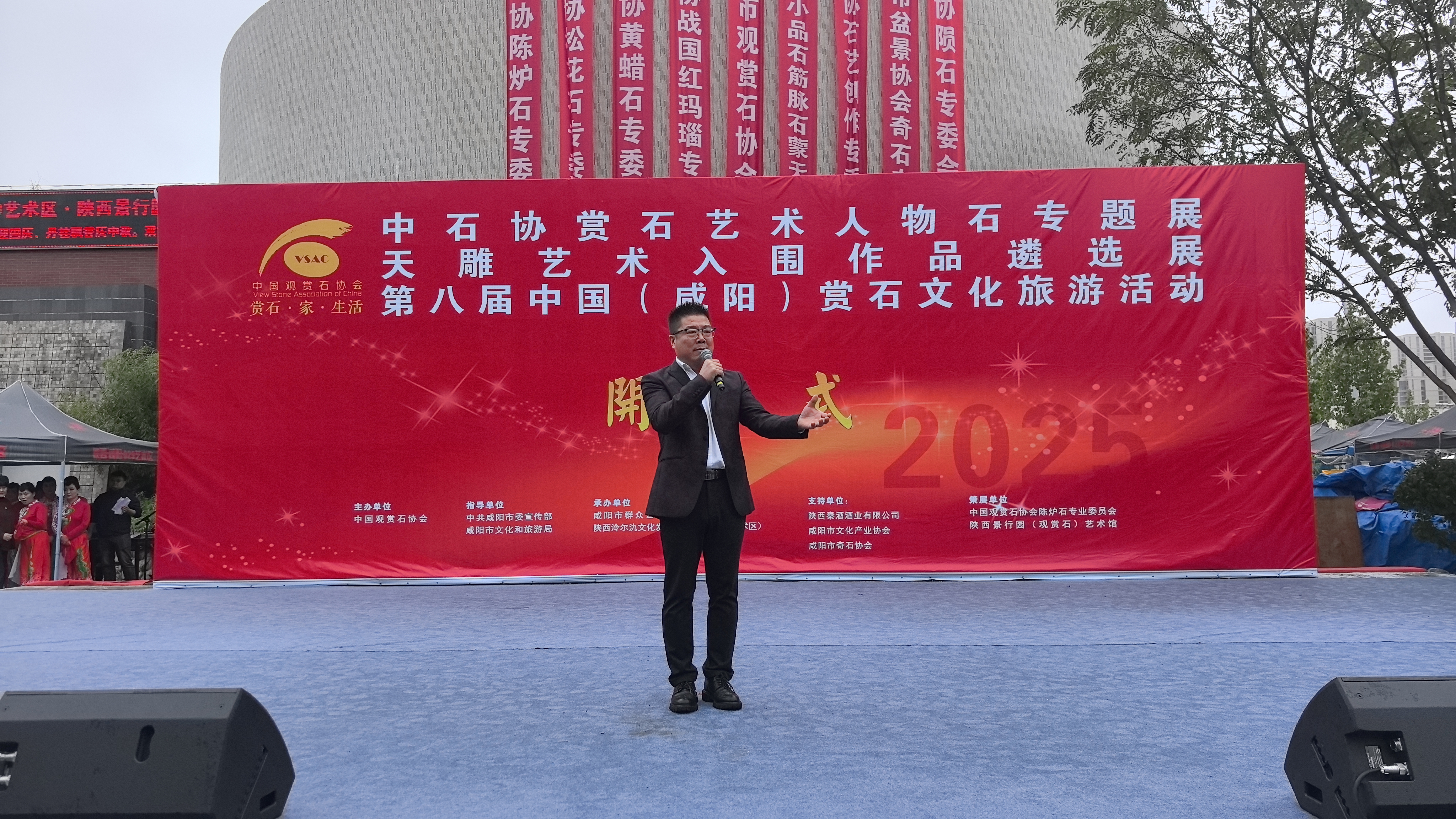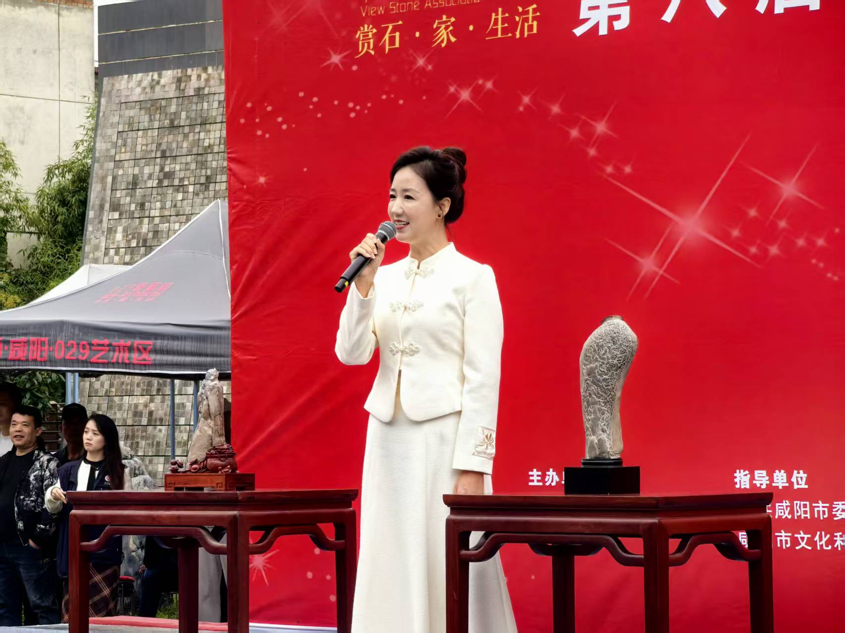 演出结束后,嘉宾与观众移步各展区参观。本届活动内容丰富多彩,涵盖精品观赏石贯标评级、赏石艺术人物石专题展、天雕艺术入围作品遴选展及观赏石展销等多个板块。同时,咸阳市各县市区的文旅资源推介、旅游商品展示与咸阳文创产品展销也将同步展开,并配套咸阳非遗项目与群众文化活动展演,多角度展现咸阳深厚的文化底蕴与旅游魅力。