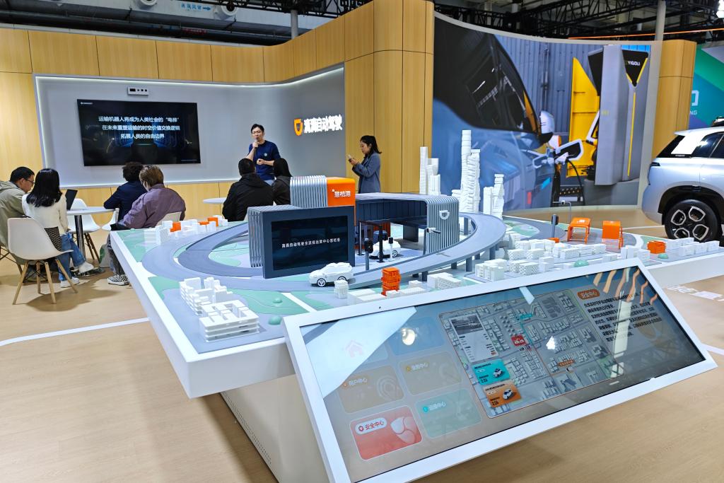 在滴滴自动驾驶展台,智能沙盘展示全无人Robotaxi运营场景。新华社记者 唐诗凝 摄